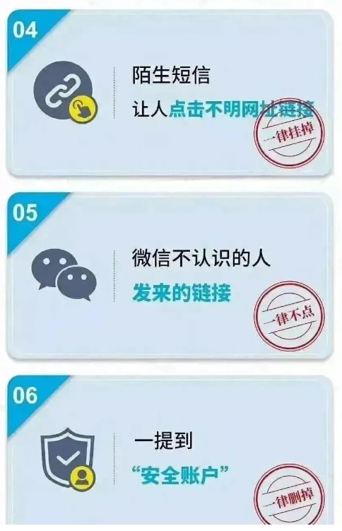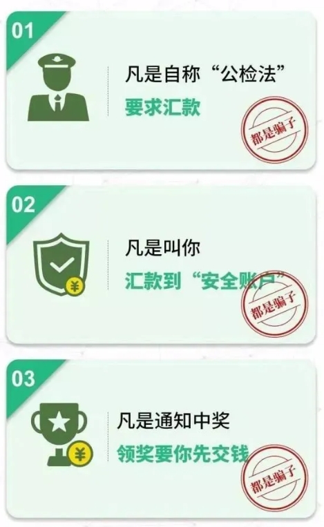 (3)凡是自稱公檢法機關(guān)或醫(yī)保局等部門,以涉嫌嚴重違法犯罪并需要保密等為由,索要銀行卡信息及密碼、驗證碼進行“資金清算”或者讓你直接把錢打到所謂的“安全賬戶”的。